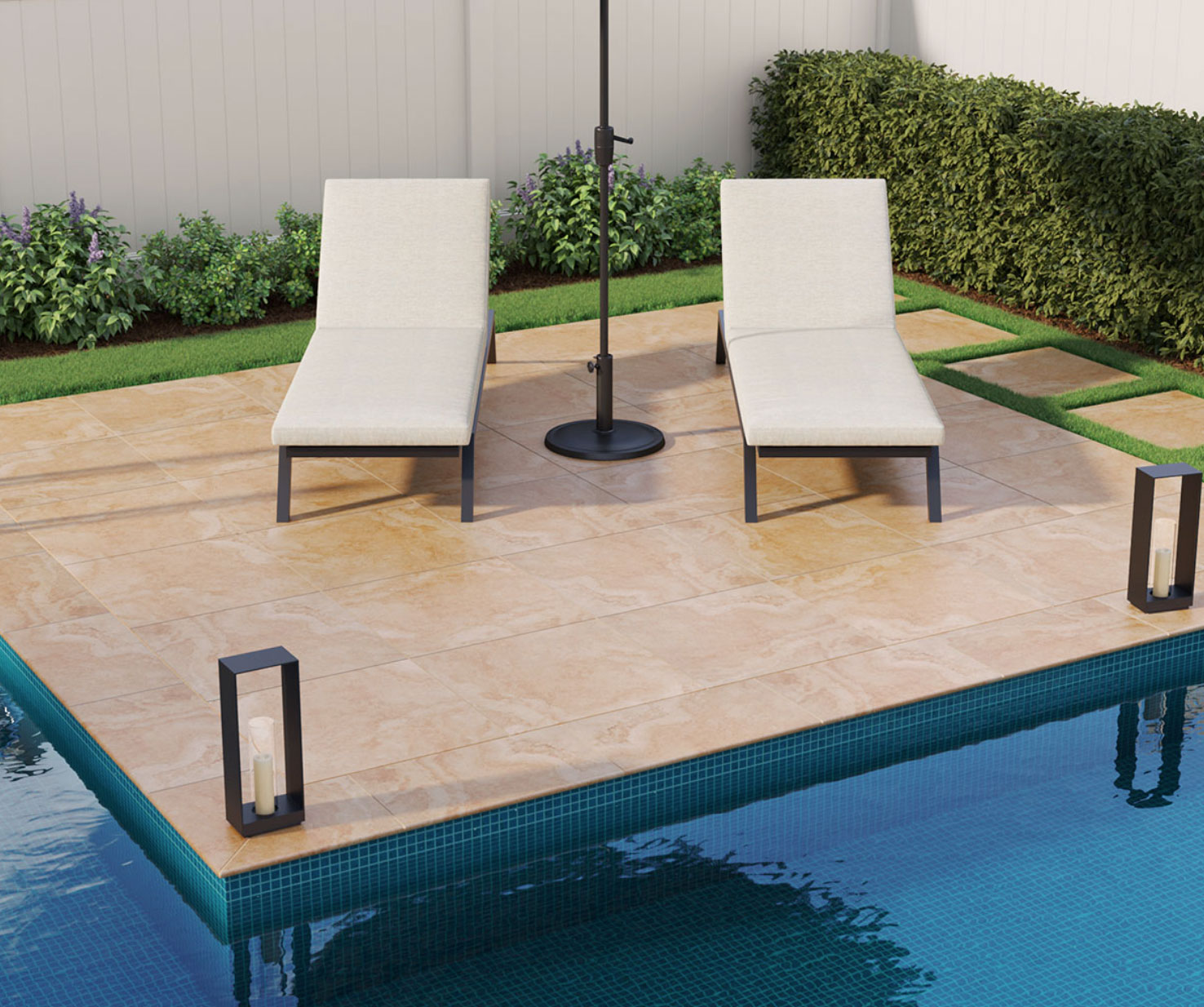 These durable, easy to clean and low maintenance porcelain pavers are the perfect choice for pool decks, patios, outdoor kitchens, and wandering pathways.