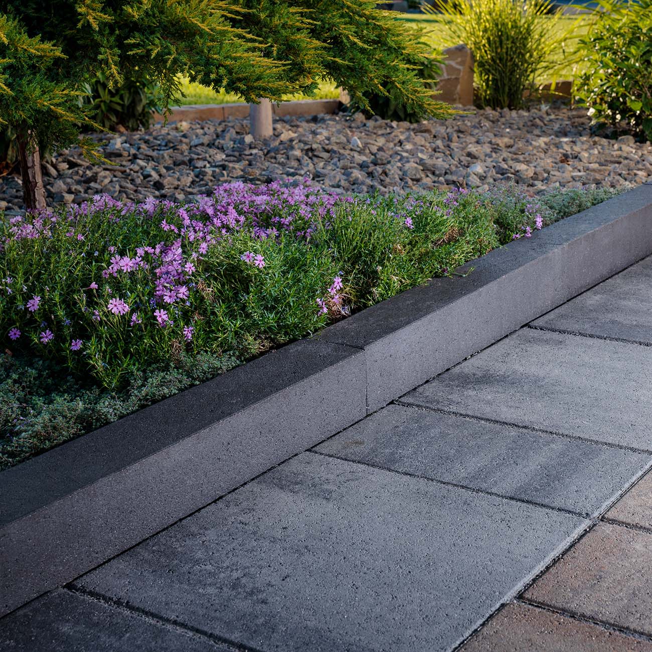 Melville™ Curb is the perfect complement for oversized slabs and pavers. With its unique length and sleek design, it gives your outdoor landscaping an elegant and modern look.