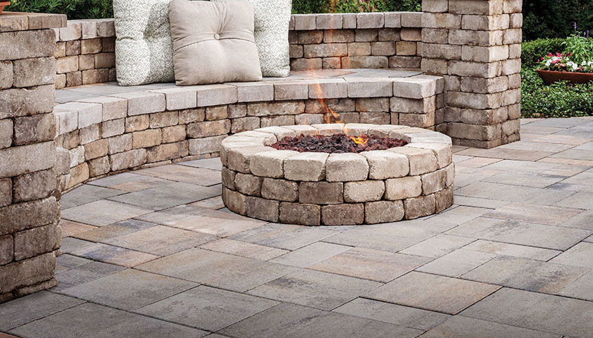 Outdoor fire features like the Grand Fire Rings and Weston Stone™ fire pits help create a warm and inviting ambiance in any outdoor space.