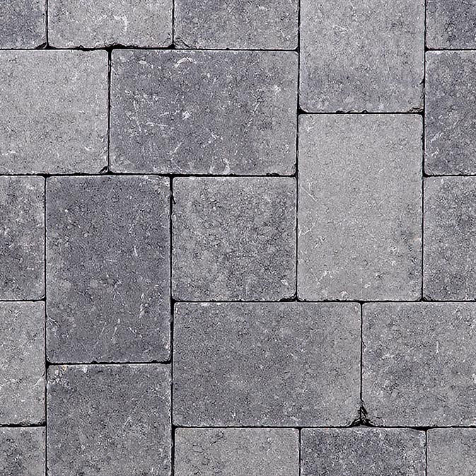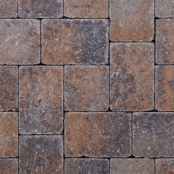 Country Cobble pavers evoke the charm of aged European stone roadways through distressed textures and warm, organic color blends.