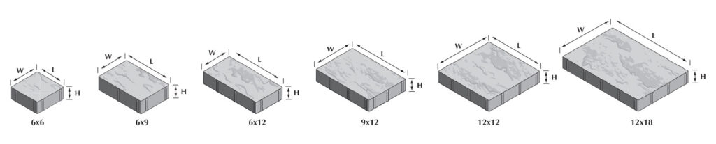 | 6×12 | 5.83″ x 11.73″ x 2.375″ | 13.5 lbs. | 224 | 108 | 3,024 lbs. |