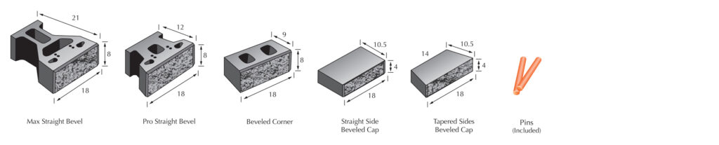 The Geowall™ Straight Beveled retaining wall system features an open core design and high strength pin connection system offering near vertical or battered setback positions.