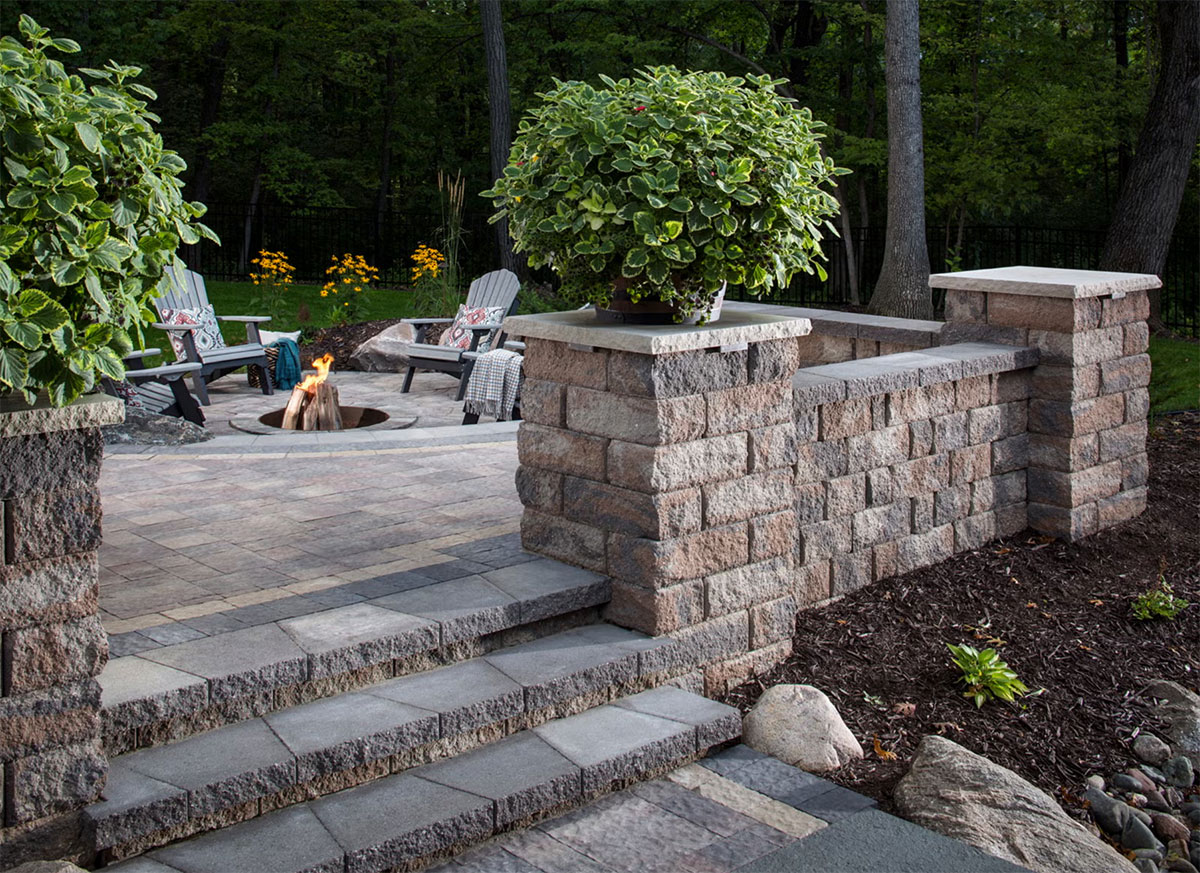 With the look of split stone, the AB Collection blends naturally into any terrain to address various grade changes and create stunning landscapes.